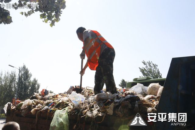 7月31日,由于距離垃圾處理廠路途太遠(yuǎn),為了能多裝一些,集團(tuán)環(huán)衛(wèi)清潔工站到裝滿垃圾的車上,把滿車臟亂的垃圾踩得結(jié)實(shí)一點(diǎn),再結(jié)實(shí)一點(diǎn)!