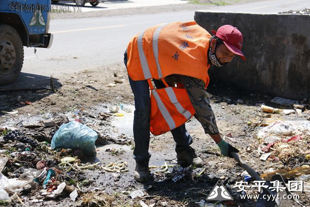 2019年7月26日,正在遼寧省朝陽市雙塔區(qū)長寶營子鄉(xiāng)長寶村作業(yè)的安平集團(tuán)清潔工人,汗水已經(jīng)將衣服浸濕,背后也有了一圈圈的汗?jié)n,都打的汗珠順著臉頰流淌下來,他們辛勤勞作的身影在眼光下愈發(fā)耀眼。