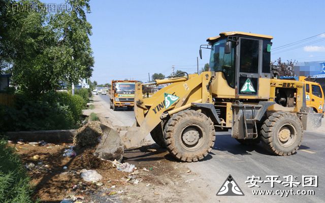 7月31日,安平集團(tuán)負(fù)責(zé)清潔的鏟車工人正在西大營子鎮(zhèn)作業(yè)。